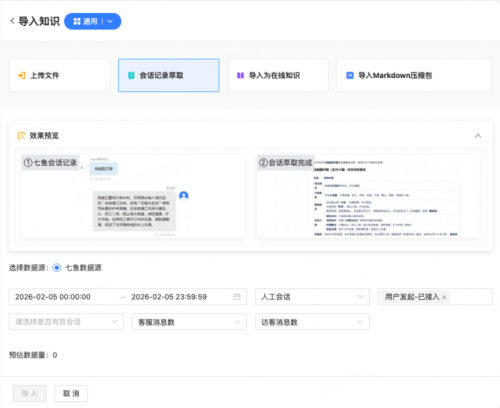 通过该方式,企业可直接复用已沉淀的客服问答内容,无需重复整理,显著降低知识构建成本。