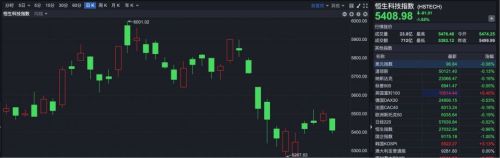 恒生科技指数收盘报5408.98点,下跌91.01点,跌幅1.65%。
