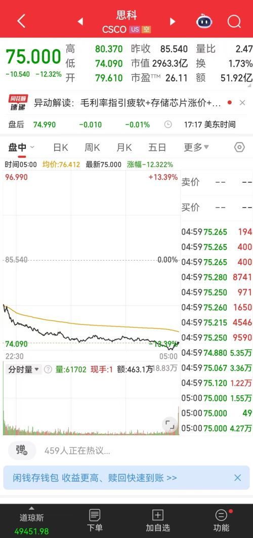 思科股价跌超12%,原因是这家生产交换机、路由器等网络硬件的公司对本季度给出令人失望的业绩指引。