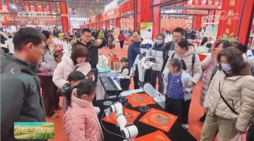 与此同时,更有机器人与嘉宾组成“皖美联盟”,在17个安徽特色展区中穿梭,开展趣味风物置换活动,用一幅机器人书写的“福”字,换取阜阳柳编福桶、六安瓜片、铜陵白姜等非遗好物,在欢声笑语中,既传递了新春祝福,也铺展开一幅动态的安徽风物全景图。