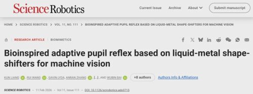 本周,《Science Robotics》封面刊登了北卡罗来纳大学教堂山分校和西湖大学团队的突破性成果:一种基于液态金属的仿生自适应瞳孔反射视觉系统。