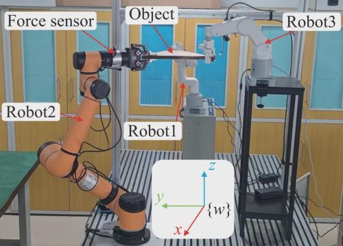 该研究针对异构三机器人系统的协同搬运柔顺性问题,通过使用myCobot 280(六轴协作机械臂)与myPalletizer 260(四轴码垛机械臂)以及另一台六轴协作机械臂,提出基于近端策略优化(PPO)的强化学习控制方法。在CoppeliaSim机器人仿真器中建立了异构三机器人协同搬运的仿真环境,分别开展了力控制与强化学习控制的对比仿真。结果表明,强化学习方法显著提高了轨迹跟踪精度和运动平滑度,也具备从仿真到现实迁移的可行性,这一进步有望在复杂环境中实现更灵活、更高效的作业来改变工业自动化。