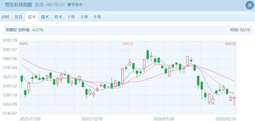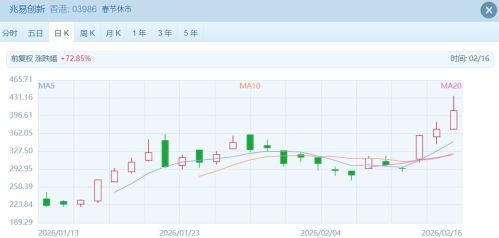 板块表现呈现“强弱分明”态势,热门板块表现突出。强势板块中,AI概念股逆势爆发,成为全场焦点,海致科技集团(HK02706)涨近30%,智谱(HK02513)、MINIMAX-WP(HK00100)分别上涨4.74%和24.56%,背后主要受益于AI技术突破、商业化落地加速及政策支持的多重利好。贵金属板块同步走强,洛阳钼业(HK03993)涨逾6%,江西铜业股份、山东黄金等涨超3%,得益于春节实物需求升温、地缘政治紧张及机构对金价的乐观预期。