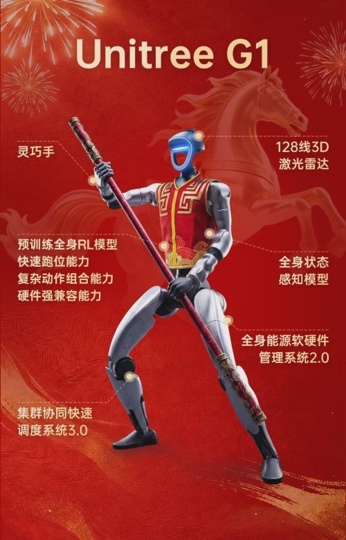 新春启序,万象更新。在中央广播电视总台2026年春晚舞台上,宇树科技作为春晚机器人合作伙伴第三次登台亮相,携G1与H2人形机器人献上全球首次全自主人形机器人集群武术表演(带集群快速跑位)。