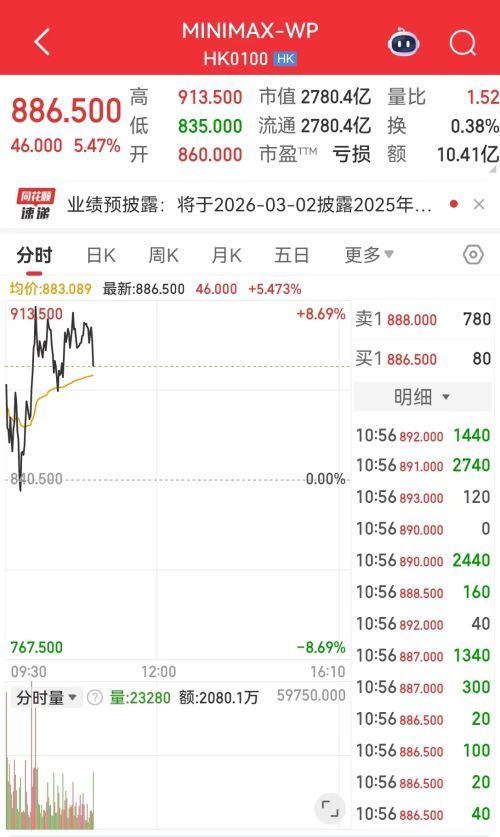 2月24日,港股大模型概念股持续走高。截至发稿,智谱涨17.86%,MINIMAX涨 5.47%。
