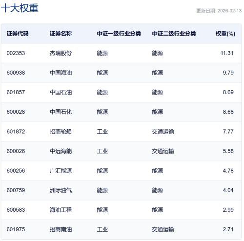 中证油气资源指数主要权重股