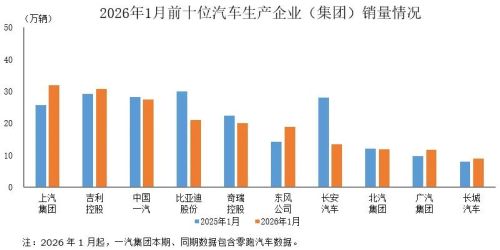 2月24日,中国汽车工业协会发布的统计分析显示,2026年1月,汽车销量排名前十位的企业(集团)共销售196.2万辆,占汽车销售总量的83.6%。