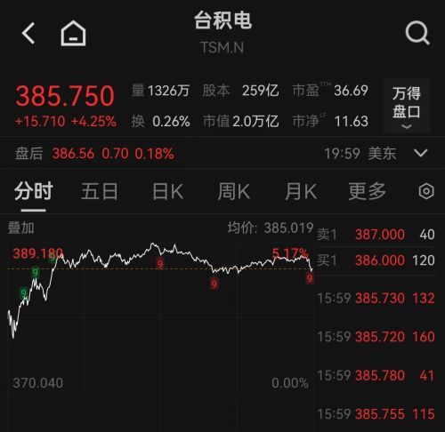 当日美股台积电股价上涨4.25%,收385.75美元/股,收盘市值2万亿美元。距离台积电达成前一个市值里程碑仅过去约16个月。2024年10月,台积电发布当年第三季度财报后市值站上1万亿美元,成为史上第七家市值破万亿美元的科技公司。一年有余,台积电市值就实现了翻倍。