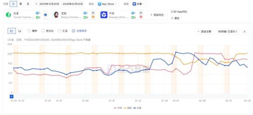 2026年春节AI营销大战硝烟渐散,元宝、豆包、千问大手笔砸钱后,三者在苹果应用商店上的座次也多番变换。