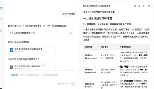 每经记者实测发现,如果要求美团LongCat大语言模型推荐北京5家最好吃的西餐厅,大模型几秒钟就生成了餐厅推荐,而如果给LongCat深度研究智能体提出同样的要求,后者研究长达5~15分钟后生成长篇研究报告。