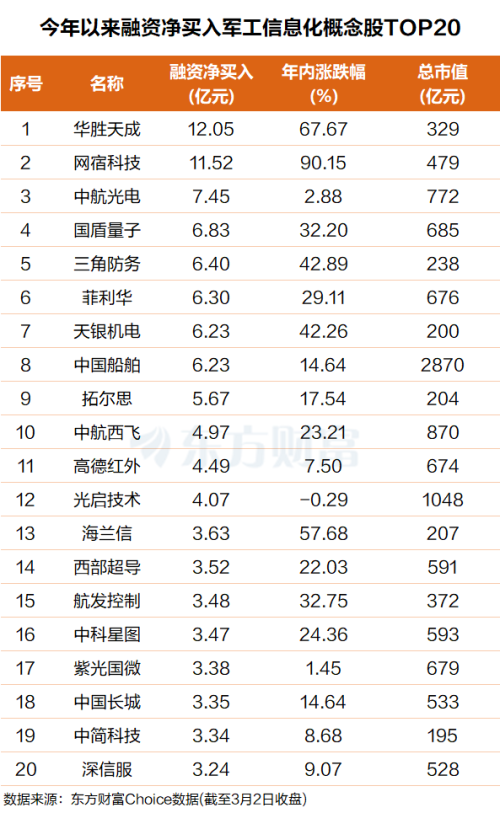具体来看,华胜天成排名第一,融资净买入超12亿元,年内涨幅高达67%;网宿科技排名第二,融资净买入超11亿元,年内涨幅已超90%。