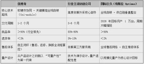 这份能力,已经让优理奇站到与国际巨头对标的位置。作为参照,特斯拉 Optimus 2026 年生产目标约为月均 83 台。优理奇 “单月持续破百台” 的实绩,意味着在 “能稳定造出来、能稳定交出去” 这一维度上,这家中国初创企业,已经与国际巨头站在同一起跑线,甚至在量产节奏上跑在了前面。