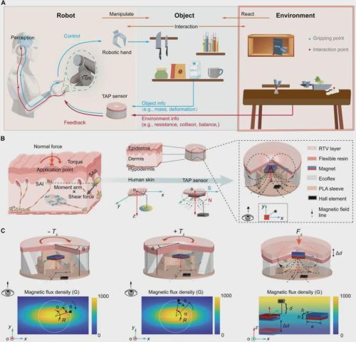 这不是比喻,是实实在在的技术突破——由香港城市大学、南方科技大学等高校联合研发的一种叫TAP(扭矩-角度-压力)触觉传感器,让机器人能像人一样,感知到“力”的方向和大小。这项研究刚刚发表在Science旗下权威期刊《Science Advances》上。