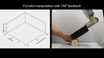 对比实验更说明问题:没有TAP反馈的机器人,切着切着刀就歪了;有TAP反馈的,轨迹和预设完美重合。