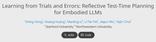 近日,斯坦福大学李飞飞、贾佳俊团队联合西北大学研究者,提出了全新的 Reflective Test-Time Planning 框架,一举打破这一困境。该框架让具身智能体具备了类人的反思能力:行动前可模拟预判,行动后能复盘优化,甚至通过追溯反思修正早期决策失误,让机器人在实际部署中真正实现 “从错误中学习”。相关成果已发布于 arXiv。