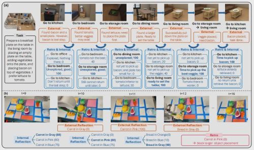 值得一提的是,目前,该框架的反思能力主要依托视觉观测与自然语言实现。未来,团队计划引入触觉、力觉等更多感官模态,在物体抓取、放置等任务中,借助更精细的物理交互信息,让机器人的反思更贴近真实物理世界。同时,研究还将进一步提升反思力度,从动作层面的反思,逐步深入到推理层面的反思,帮助机器人更精准地定位错误根源。、