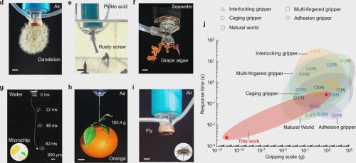 值得注意的是,这一指标不仅远超现有机器人抓手,也位列自然界生物与人工致动器中的最快释放速度之一。
