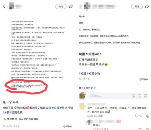深受AI稿件侵扰的网文编辑们通常会发帖坚决抵制AI。