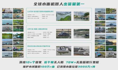 “双翼”之一为专业级水面机器人产品线,包括无人驾驶环保船、水利巡检船、海洋无人艇,应用于水面清洁、水草收割、环境监测、应急救援等,目前已推广至12个国家的上百个水域,出货量位居行业前列。另一翼为消费级智能载人游船,推出“漫”“汐”“漾”三款产品,落地全国多家5A级景区,探索智慧滨水经济的新模式。