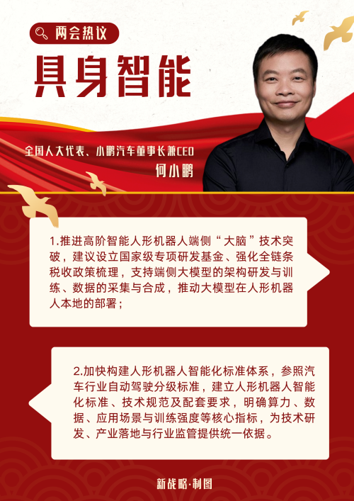 在今年两会关于人形机器人与具身智能的讨论中,全国人大代表、小鹏汽车董事长兼CEO何小鹏将关注点放在了“端侧本地大脑”上。