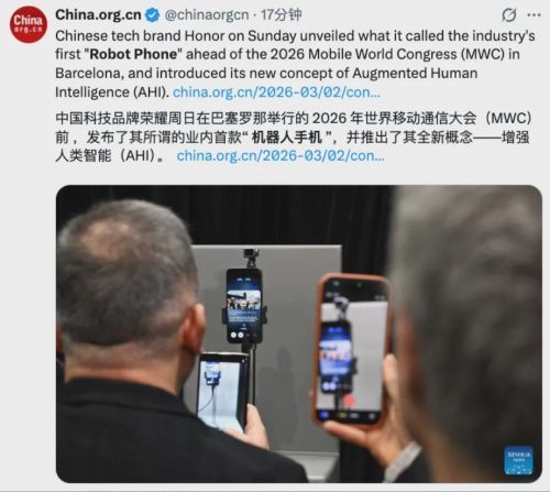 从2025年全球手机出货量突破7100万台,海外销量占比首次过半,到如今在MWC舞台上用机器人和机器人手机在MWC舞台上大放异彩,荣耀正在用行动证明,它已经不再满足于在存量市场的红海中搏杀。