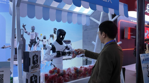 展会现场,远征A2全尺寸人形机器人成为人气焦点,它不仅以精准流畅的动作握笔写就“福”、“禄”,更带来精彩的快板表演,通过自然流畅的交互对话与观众深度互动,尽显全场景接待能力与拟人化交互魅力。作为已通过中、美、欧三地认证的全尺寸人形机器人,远征A2已实现全面规模化商用落地,现场观众能直观感受到人形机器人从技术验证走向日常应用的跨越。