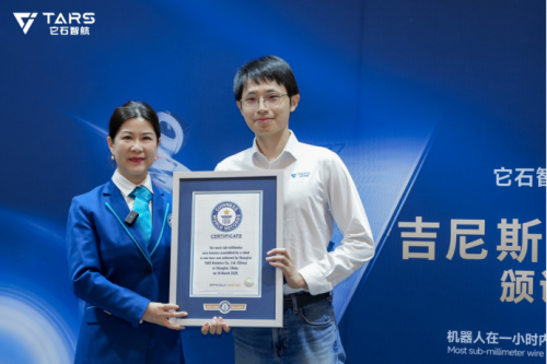 今日,它石智航首席科学家丁文超博代表它石接受吉尼斯世界纪录官方认证官所颁发的证书。他指出,具身智能的价值,不在于能表演什么,而在于能创造什么。这次成功获得吉尼斯世界纪录称号,代表着它石经受住了精度、稳定和泛化这三条具身智能最硬指标的极限验证,也是让具身智能加速走向实干的重要起点。