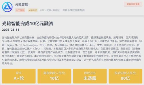 2026年3月11日,光轮智能(北京)科技有限公司(以下简称“光轮智能”)正式宣布完成10亿元A++及A+++轮融资。本轮融资引入了多家产业场景方及财务机构,包括新希望集团、鼎邦投资(三安光电董事长家族办公室)、奥克斯、鼎石资管等产业投资方,以及建投华科、国方创新、道禾长期投资、清新资本等财务投资机构。