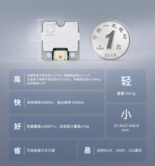该产品严格遵循车规级可靠性标准,选用耐腐蚀不锈钢外壳,支持磁力计选配,以超低功耗实现高频可靠姿态输出与超强环境适应性;同时,凭借小巧轻量化设计,兼容EtherCAT、RS232、RS485等多类协议,模组提供了高度灵活的集成方案,有效简化系统架构,加速人形机器人研发与落地迭代。