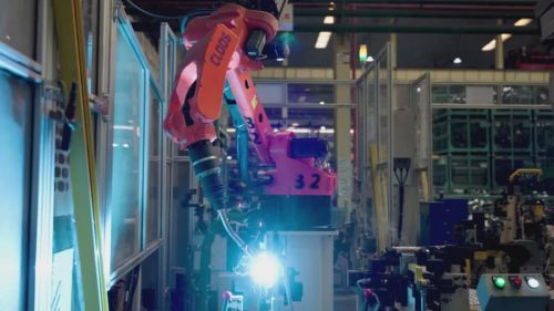 全新投入的汽车零部件智能工厂,机器人应用场景繁多且工艺复杂,包括:点焊、涂胶、SPR、FDS、螺柱焊、搬运、弧焊等混合工艺,整线部署埃斯顿机器人超200台,负载涵盖6kg-500kg,满足年产能三十万台车零部件的生产需求。
