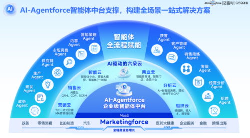 在营销、销售、服务这一垂直赛道,迈富时(Marketingforce)推出的AI-Agentforce 3.0展现出独特的系统性优势。该平台定位为企业级营销智能体中台,其核心价值体现在四个维度: