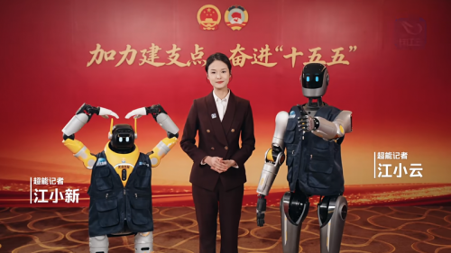 湖北广电与光谷东智共同打造的机器人记者“江小云”“江小新”继年初湖北两会报道后,首次加入全国两会报道团,走进北京。在新闻采制过程中,人形机器人举起话筒、按下快门,它们用独特的科技视角记录两会现场。