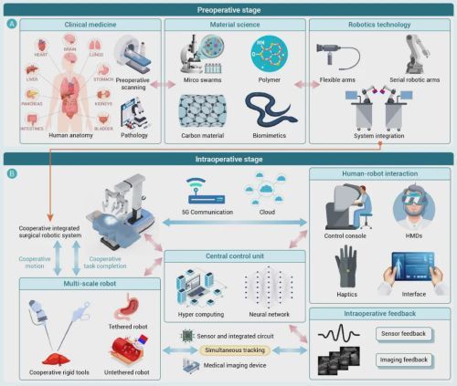 图6. 协作集成式手术机器人的多学科融合技术发展路线