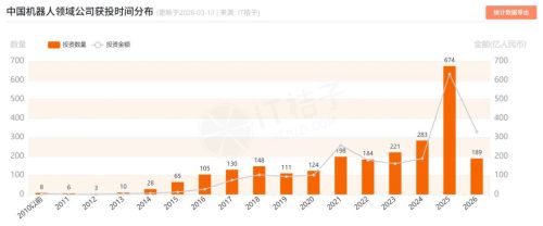 IT桔子数据显示,2026年至今,国内具身智能赛道已发生189起股权融资事件,这意味着平均每天就有2.6起融资落地,且2月和3月融资额均破百亿元。