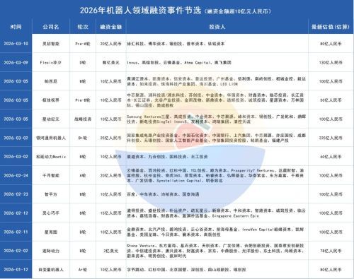 2026年机器人领域重要融资事件 数据来源/IT桔子 新莓制图