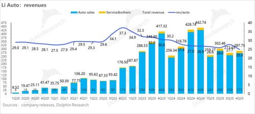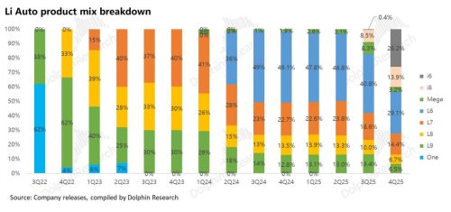 海豚君认为这个环比继续大幅下滑趋势主要由a. 由于i6的产能释放,低价的i6占比预计从25Q4的26%进一步环比上升的26年Q1的60%;b. 继续大幅降价清老款车型,迎接自Q2开始新车周期的到来。