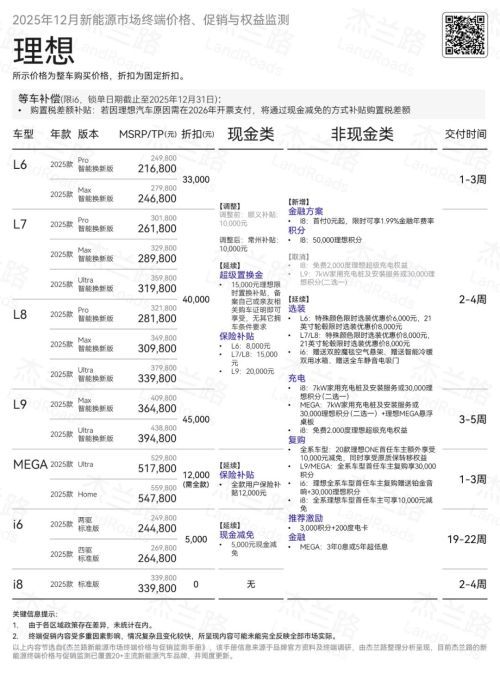 ② 理想仍然还在加大对L系列基本盘车型提供折扣