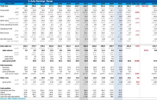 但老款L系列的销量压力仍然巨大:老款L系列26年1-2月销量仅1.8万辆(平均单月销量仅9000辆),同比去年同期5.5万辆下滑67%,车型过老,竞争加剧(同行纷纷推出对标L系列更大更便宜车型),自身纯电i6+i8对老款L系列的销量挤压效应仍然存在,最后这个销量指引相比去年一季度的9.3万辆仍然要同比下滑3%-9%。