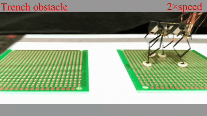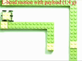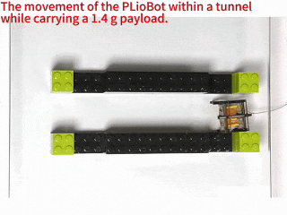 真正考验的是隧道和L形弯道。PLioBot钻进16厘米长、3厘米宽的隧道,背上驮着1.4克载荷,以8.56 cm/s(3.42倍身长/秒)的速度顺利通过。