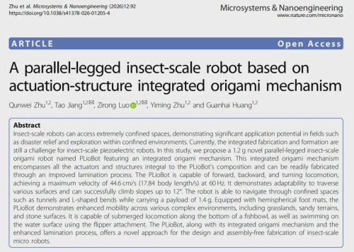 这不是科幻道具,而是国防科技大学团队刚刚登上《Nature》子刊《Microsystems & Nanoengineering》的全新作品——PLioBot,一款并联腿昆虫级折纸机器人。