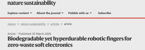 他们成功研发了一款既能生物降解,又“超耐用”的机器人手指,为实现“零浪费”软体电子设备的研发与应用提供了重要思路。