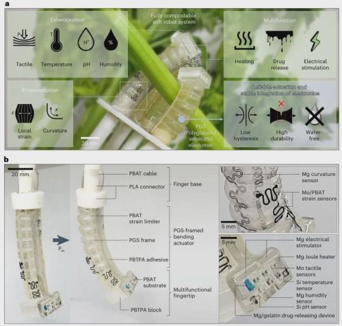 研究团队将整个机器人手指置于模拟工业堆肥的环境中(58°C,高湿度,pH 7-8)。奇妙的变化发生了: