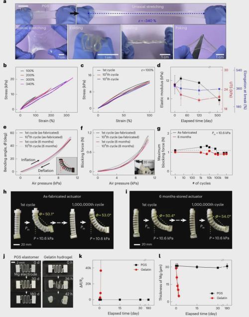 不仅如此,这种材料还具备出色的“保质期”。即使在室温环境下存放了6个月甚至长达1.4年之久,PGS材料及其制成的致动器性能依然稳定如初。这意味着由它制造的机器人,无需担心因材料老化而频繁更换,极大地降低了使用过程中的资源消耗。