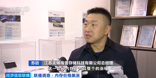 近段时间以来,内存涨价潮席卷全球。江苏无锡海普存储科技有限公司总经理苏欣直言,从去年的四季度到现在,一款内存产品的涨幅差不多有三到四倍以上。去年市场价可能是三四千元,现在甚至有1万元以上的价格出现,感觉比黄金还要贵。