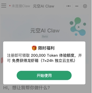 即日起,用户只需通过微信搜索“元空AI Claw”即可开箱即用。 为了加速AI平权,团队推出了极具诚意的福利:免费领取龙虾,注册即送Token,甚至免费赠送龙虾箱(独立云主机资源)。真正实现零成本享受专业级AI办公服务,无需承担额外成本即可提升办公效率。