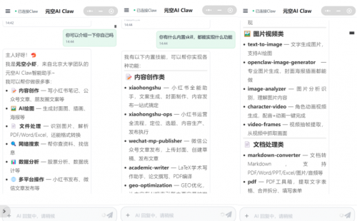 元空AI Claw不仅带有北大的技术基因,更在商业模式上推行极致的“技术平权”。它定位为“中国最易用的龙虾”,核心优势在于极致的零门槛体验。