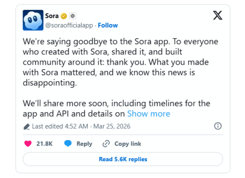 在上线仅六个月后,OpenAI 旗下的视频社交应用 Sora 迎来了终局。OpenAI 于本周二正式宣布将关停这款曾被寄予厚望、旨在挑战 TikTok 地位的 AI 原生社交平台。尽管底层模型 Sora2的生成能力令人震撼,但这款应用在道德边界、监管合规以及用户留存上的多重困境,最终使其成为了 AI 发展史上的一颗流星。