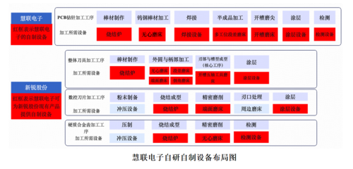 据介绍,慧联电子不仅掌握PCB钻针的全套核心工艺,更难得的是,慧联电子的烧结炉、磨床、涂层设备等关键装备已实现自研自制,这不仅构筑了自身深厚的技术护城河,未来更将成为赋能新锐股份已有硬质合金及刀具业务的“技术引擎”。双方协同后,有望在降本增效、工艺突破、快速响应上形成独特优势,实现从“材料+装备+硬质合金及刀具产品”的全链路掌控,实现“1+1>2”的产业竞争优势。