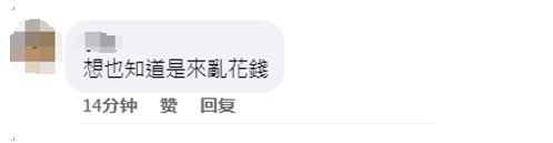 此事引起一些岛内网民的议论,有人在社交平台脸书上留言表示,“想也知道是乱花钱”。