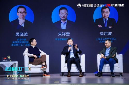 随后,吴晓波与宁波双鹿电池总裁朱祥奎共同启动了发布仪式,吴晓波频道正式向双鹿电池授予了“标杆工厂”荣誉牌匾。